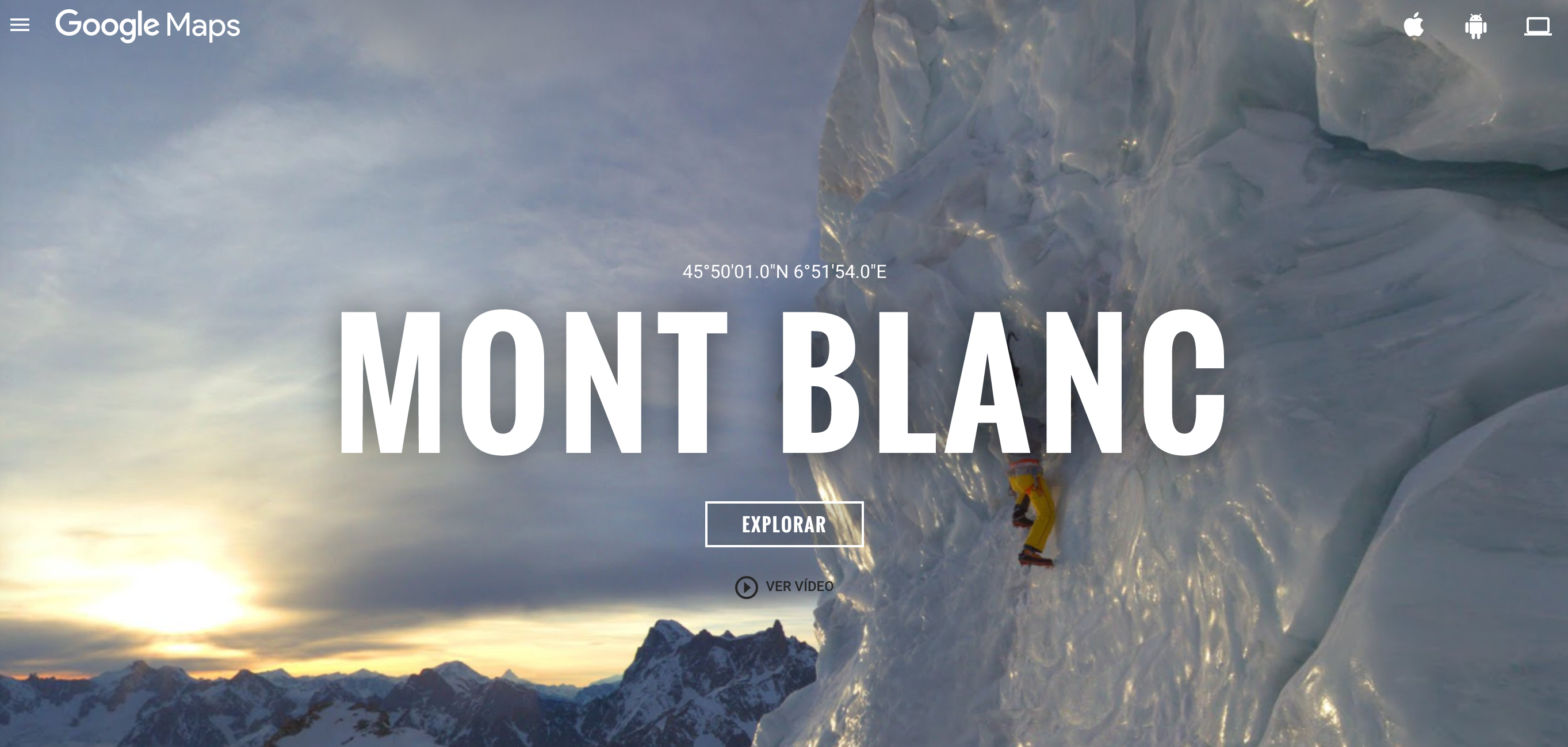 Es así como google maps desde su street view te lleva desde la comodidad de tu casa a hacer cumbre en el mont blanc.